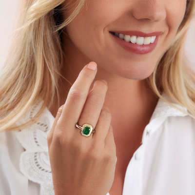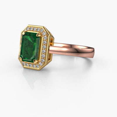 This 14 Carat rose gold ring is called Dodie 1 eme and is set with 8x6 mm emerald. Does your girlfriend fancy exclusive jewellery? Or would you like to show her that she deserves the finest jewellery? This rose gold ring is pure craftsmanship, love and passion combined with the latest techniques coming together in perfect harmony. It requires a keen eye, patience and a skilful hand to mould this ring into perfection. Just the job for our expert goldsmith! The emerald set gemstones gives this rose gold ring an extra glamorous appearance. Customize the style of the special engagement ring to her liking with a wide variety of precious metals and gemstones which you select. That is how you create a unique ring for the most exclusive woman in your life! This jewel is made to shine bright around your finger. Each jewel is hand made with love by our goldsmiths.After receiving your order, our goldsmiths will start the creative process of making your Dodie 1 eme engagement ring. We don't keep stock. This is advantageous because these costs will not be passed on to you. Therefore, we can offer jewellery at exceptionally low prices.Our team adds new designs to our online collection daily. Our designers and goldsmiths work together in creating the best design. We strive to offer a diverse collection of jewels. Perhaps you have a specific jewel design in mind. One you came across somewhere. Please contact us for a free consultation. We will make you an offer, based on a fair price/ quality ratio, that will baffle you.To make it easier for you, we offer a 30 day return policy. Check our terms and conditions.