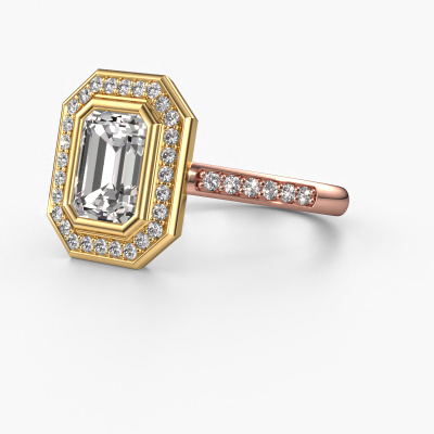 This 14 Carat rose gold ring is called Noud 2 EME and is set with 2.104 crt lab grown diamond. Does your girlfriend fancy exclusive jewellery? Or would you like to show her that she deserves the finest jewellery? This rose gold ring is pure craftsmanship, love and passion combined with the latest techniques coming together in perfect harmony. It requires a keen eye, patience and a skilful hand to mould this ring into perfection. Just the job for our expert goldsmith! The lab-grown diamonds set gemstones gives this rose gold ring an extra glamorous appearance. Customize the style of the pavé engagement ring to her liking with a wide variety of precious metals and gemstones which you select. That is how you create a unique ring for the most exclusive woman in your life! This jewel is created to add sparkle to your finger, each jewel is lovingly made by hand by our goldsmiths.After receiving your order, our goldsmiths will start the creative process of making your Noud 2 EME engagement ring. We don't keep stock. This is advantageous because these costs will not be passed on to you. Therefore, we can offer jewellery at exceptionally low prices.Have you found a specific engagement ring somewhere which you would like to give to your loved one? Please feel free to express your wishes to our jewel designers because we would be honoured to turn your design into a exclusive engagement ring. You can follow the development of your ring design because we use 3D drawings. This gives you a realistic preview of how your design will look. You can also preorder a dummy. A dummy is a plastic ring, which can be shaped according your ring design. You can try it on and check if its width and size are suitable for you. We will gladly send you a non-binding offer, based on a fair price/ quality ratio. It will amaze you, considering the quality of the ring and gemstones.To make it easier for you, we offer a 30 day return policy. Check our terms and conditions.