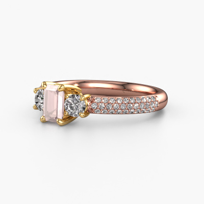 This 14 Carat rose gold ring is called Marielle EME and is set with 6x4 mm morganite champagne. Does your girlfriend fancy exclusive jewellery? Or would you like to show her that she deserves the finest jewellery? This rose gold ring is pure craftsmanship, love and passion combined with the latest techniques coming together in perfect harmony. It requires a keen eye, patience and a skilful hand to mould this ring into perfection. Just the job for our expert goldsmith! The morganite champagne set gemstones gives this rose gold ring an extra glamorous appearance. Customize the style of the special engagement ring to her liking with a wide variety of precious metals and gemstones which you select. That is how you create a unique ring for the most exclusive woman in your life! This jewel is created to add sparkle to your finger, each jewel is lovingly made by hand by our goldsmiths.Because we design and deliver our own rings, we can offer you a engagement ring at a price you won't find anywhere else. A ring is made to order, which helps prevent excess supplies, so we can make you a great price offer. We understand it feels risky, buying your engagement ring online, but we will gladly assist in the designing process, taking your budget into consideration.Our team adds new designs to our online collection daily. Our designers and goldsmiths work together in creating the best design. We strive to offer a diverse collection of jewels. Perhaps you have a specific jewel design in mind. One you came across somewhere. Please contact us for a free consultation. We will make you an offer, based on a fair price/ quality ratio, that will baffle you.To make it easier for you, we offer a 30 day return policy. Check our terms and conditions.
