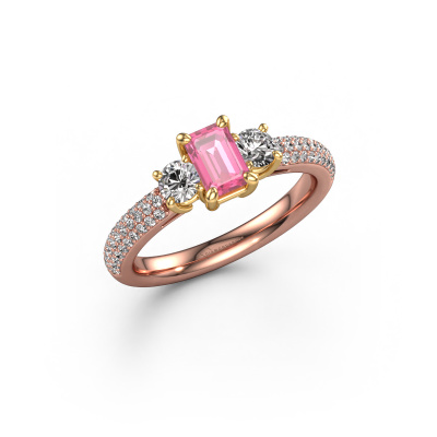 This 14 Carat rose gold ring is called Marielle EME and is set with 6x4 mm pink sapphire. Does your girlfriend fancy exclusive jewellery? Or would you like to show her that she deserves the finest jewellery? This rose gold ring is pure craftsmanship, love and passion combined with the latest techniques coming together in perfect harmony. It requires a keen eye, patience and a skilful hand to mould this ring into perfection. Just the job for our expert goldsmith! The pink sapphire set gemstones gives this rose gold ring an extra glamorous appearance. Customize the style of the special engagement ring to her liking with a wide variety of precious metals and gemstones which you select. That is how you create a unique ring for the most exclusive woman in your life! This jewel is created to add sparkle to your finger, each jewel is lovingly made by hand by our goldsmiths.Because we design and deliver our own rings, we can offer you a engagement ring at a price you won't find anywhere else. A ring is made to order, which helps prevent excess supplies, so we can make you a great price offer. We understand it feels risky, buying your engagement ring online, but we will gladly assist in the designing process, taking your budget into consideration.Our team adds new designs to our online collection daily. Our designers and goldsmiths work together in creating the best design. We strive to offer a diverse collection of jewels. Perhaps you have a specific jewel design in mind. One you came across somewhere. Please contact us for a free consultation. We will make you an offer, based on a fair price/ quality ratio, that will baffle you.To make it easier for you, we offer a 30 day return policy. Check our terms and conditions.
