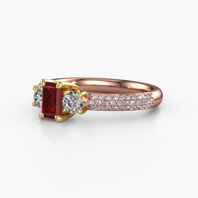 This 14 Carat rose gold ring is called Marielle EME and is set with 6x4 mm ruby. Does your girlfriend fancy exclusive jewellery? Or would you like to show her that she deserves the finest jewellery? This rose gold ring is pure craftsmanship, love and passion combined with the latest techniques coming together in perfect harmony. It requires a keen eye, patience and a skilful hand to mould this ring into perfection. Just the job for our expert goldsmith! The ruby set gemstones gives this rose gold ring an extra glamorous appearance. Customize the style of the special engagement ring to her liking with a wide variety of precious metals and gemstones which you select. That is how you create a unique ring for the most exclusive woman in your life! This jewel is created to add sparkle to your finger, each jewel is lovingly made by hand by our goldsmiths.Because we design and deliver our own rings, we can offer you a engagement ring at a price you won't find anywhere else. A ring is made to order, which helps prevent excess supplies, so we can make you a great price offer. We understand it feels risky, buying your engagement ring online, but we will gladly assist in the designing process, taking your budget into consideration.Our team adds new designs to our online collection daily. Our designers and goldsmiths work together in creating the best design. We strive to offer a diverse collection of jewels. Perhaps you have a specific jewel design in mind. One you came across somewhere. Please contact us for a free consultation. We will make you an offer, based on a fair price/ quality ratio, that will baffle you.To make it easier for you, we offer a 30 day return policy. Check our terms and conditions.