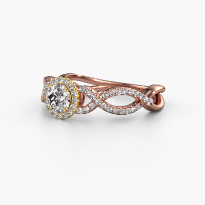 The ring shown above is called the Dionne rnd. We call this type of ring a pavé solitaire ring because it has one centre gemstone and a band that is also pave set with gemstones. The 14 Carat rose gold engagement ring is set with a round 0.30 crt diamond centre stone and the band is pave set with diamond gemstones. Each jewel is made just for you by our master goldsmiths in our own studio.This classic rose gold pavé solitaire engagement ring has an exquisite round diamond centre stone. To further accentuate the centre stone, the band is fully set with more diamonds. Its open prong setting allows light to strike the diamond from various angles and this adds sparkle to your diamond ring. The photo shown above depicts the goldsmith's carefully handcrafted details of the ring. The high positioning of the centre stone is truly eye-catching. The perfect engagement ring for the crown jewel of your life! Because we design and deliver our own rings, we can offer you a engagement ring at a price you won't find anywhere else. A ring is made to order, which helps prevent excess supplies, so we can make you a great price offer. We understand it feels risky, buying your engagement ring online, but we will gladly assist in the designing process, taking your budget into consideration.Do you have a specific ring in mind? One you came across somewhere. Please feel free to tell us your wishes and we will turn your design into a unique engagement ring. You can follow the development of your ring design because we use 3D drawings. This gives you a realistic preview of your design. We will gladly send you a non-binding offer, based on a fair price/ quality ratio. It will amaze you.To make it easier for you, we offer a 30 day return policy. Check our terms and conditions.