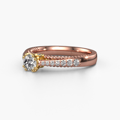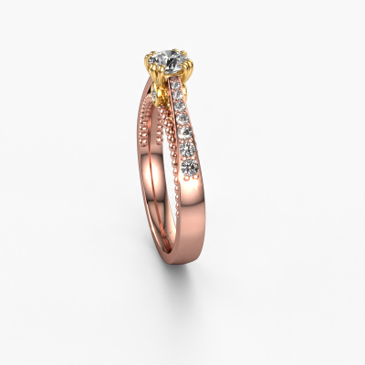 The ring shown above is called the Rozella. We call this type of ring a pavé solitaire ring because it has one centre gemstone and a band that is also pave set with gemstones. The 14 Carat rose gold engagement ring is set with a round 0.30 crt diamond centre stone and the band is pave set with lab grown diamond gemstones. Each jewel is made to shine bright around your finger. Each jewel is hand made with love by our goldsmiths.This unique rose gold pavé solitaire engagement ring has an exquisite round diamond centre stone. To further accentuate the centre stone, the band is fully set with more lab-grown diamonds. Its open prong setting allows light to strike the diamond from various angles and this adds sparkle to your diamond ring. The photo shown above depicts the goldsmith's carefully handcrafted details of the ring. The high positioning of the centre stone is truly eye-catching. The perfect engagement ring for the crown jewel of your life! After receiving your order, our goldsmiths will start the creative process of making your Rozella engagement ring. We don't keep stock. This is advantageous because these costs will not be passed on to you. Therefore, we can offer jewellery at exceptionally low prices.Our designers and goldsmiths work together each day, creating new jewels. Perhaps you have found a nice unique engagement ring somewhere, which can be used to customize your unique ring. Please feel free to contact us. We will make you an offer, based on a fair price/ quality ratio, which will amaze you.To make it easier for you, we offer a 30 day return policy. Check our terms and conditions.