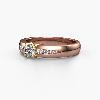 The ring shown above is called the Zohra. We call this type of ring a pavé solitaire ring because it has one centre gemstone and a band that is also pave set with gemstones. The 14 Carat rose gold engagement ring is set with a round 0.30 crt diamond centre stone and the band is pave set with diamond gemstones. Each jewel is made just for you by our master goldsmiths in our own studio.This modern rose gold pavé solitaire engagement ring has an exquisite round diamond centre stone. To further accentuate the centre stone, the band is fully set with more diamonds. Its open prong setting allows light to strike the diamond from various angles and this adds sparkle to your diamond ring. The photo shown above depicts the goldsmith's carefully handcrafted details of the ring. The high positioning of the centre stone is truly eye-catching. The perfect engagement ring for the crown jewel of your life! Because we design and deliver our own rings, we can offer you a engagement ring at a price you won't find anywhere else. A ring is made to order, which helps prevent excess supplies, so we can make you a great price offer. We understand it feels risky, buying your engagement ring online, but we will gladly assist in the designing process, taking your budget into consideration.Our team adds new designs to our online collection daily. Our designers and goldsmiths work together in creating the best design. We strive to offer a diverse collection of jewels. Perhaps you have a specific jewel design in mind. One you came across somewhere. Please contact us for a free consultation. We will make you an offer, based on a fair price/ quality ratio, that will baffle you.To make it easier for you, we offer a 30 day return policy. Check our terms and conditions.
