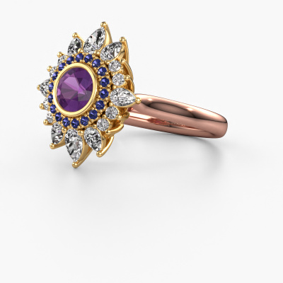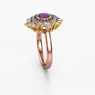 This 14 Carat rose gold ring is called Tianna and is set with amethyst. An extraordinary rose gold vintage ring. One that will surely make the love of your life shine like a diamond! That is what we hope to achieve. This vintage engagement ring is set with exquisite amethysten. Whichever gemstone you choose from our selection, is up to you. The gemstone is selected with great care because we believe your engagement ring must be adorned with nothing but the most beautiful gemstone. Wouldn't you agree? Our expert goldsmith will design your ring in our own artisan studio, where the amethyst will be set with great precision. The ring will then be polished till it is absolutely perfect. Nothing but the best for the love of your life! This jewel is made just for you by our master goldsmiths in our own studio.Because we design and deliver our own rings, we can offer you a engagement ring at a price you won't find anywhere else. A ring is made to order, which helps prevent excess supplies, so we can make you a great price offer. We understand it feels risky, buying your engagement ring online, but we will gladly assist in the designing process, taking your budget into consideration.Our team adds new designs to our online collection daily. Our designers and goldsmiths work together in creating the best design. We strive to offer a diverse collection of jewels. Perhaps you have a specific jewel design in mind. One you came across somewhere. Please contact us for a free consultation. We will make you an offer, based on a fair price/ quality ratio, that will baffle you.To make it easier for you, we offer a 30 day return policy. Check our terms and conditions.