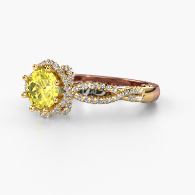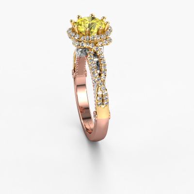 This 14 Carat rose gold ring is called Lysanne and is set with 6.5 mm yellow lab grown diamond. This filigree rose gold engagement ring is a true work of art! A beautifully adorned design of intricate wires. With dedication, patience and the utmost precision, our expert goldsmith will design a ring just for you. The adornment of small wiring is crafted to perfection by hand. It's a lengthy process which includes welding, crafting and polishing until our Goldsmiths are completely satisfied with the result: a perfect eye-catching ring that makes her shine with delight. Therefore the vintage filigree engagement ring is an extraordinary gift to bestow upon the love of your life. A handmade one-of-a-kind personalized ring, to be given to that special someone on that special moment when you pop the question. Isn't that wonderful? This piece of jewellery is made by a team of passionate goldsmiths and jewel designers. This will make your crown jewel truly eye-catching.After receiving your order, our goldsmiths will start the creative process of making your Lysanne engagement ring. We don't keep stock. This is advantageous because these costs will not be passed on to you. Therefore, we can offer jewellery at exceptionally low prices.Have you found a specific engagement ring somewhere which you would like to give to your loved one? Please feel free to express your wishes to our jewel designers because we would be honoured to turn your design into a vintage engagement ring. You can follow the development of your ring design because we use 3D drawings. This gives you a realistic preview of how your design will look. You can also preorder a dummy. A dummy is a plastic ring, which can be shaped according your ring design. You can try it on and check if its width and size are suitable for you. We will gladly send you a non-binding offer, based on a fair price/ quality ratio. It will amaze you, considering the quality of the ring and gemstones.To make it easier for you, we offer a 30 day return policy. Check our terms and conditions.