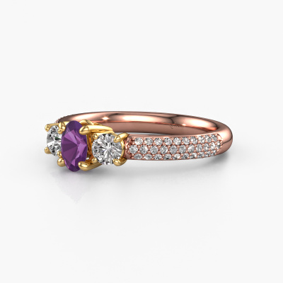 This 14 Carat rose gold ring is called Marielle OVL and is set with 6.5x4.5 mm amethyst. Does your girlfriend fancy exclusive jewellery? Or would you like to show her that she deserves the finest jewellery? This rose gold ring is pure craftsmanship, love and passion combined with the latest techniques coming together in perfect harmony. It requires a keen eye, patience and a skilful hand to mould this ring into perfection. Just the job for our expert goldsmith! The amethysten set gemstones gives this rose gold ring an extra glamorous appearance. Customize the style of the pavé engagement ring to her liking with a wide variety of precious metals and gemstones which you select. That is how you create a unique ring for the most exclusive woman in your life! This jewel is made just for you by our master goldsmiths in our own studio.Are you on a budget? Please feel free to contact us, so we can go discuss your options. We offer our engagement rings at guaranteed best price, because we make them to order. You won't find such a price anywhere else!Have you found a specific engagement ring somewhere which you would like to give to your loved one? Please feel free to express your wishes to our jewel designers because we would be honoured to turn your design into a exclusive engagement ring. You can follow the development of your ring design because we use 3D drawings. This gives you a realistic preview of how your design will look. You can also preorder a dummy. A dummy is a plastic ring, which can be shaped according your ring design. You can try it on and check if its width and size are suitable for you. We will gladly send you a non-binding offer, based on a fair price/ quality ratio. It will amaze you, considering the quality of the ring and gemstones.To make it easier for you, we offer a 30 day return policy. Check our terms and conditions.