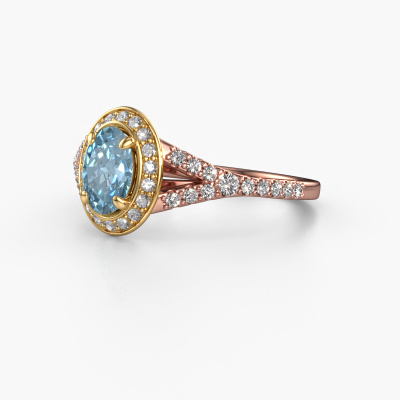 The ring shown above is called the Pamela OVL. We call this type of ring a halo ring because it has one centre gemstone and a band that is also pave set with gemstones. The 14 Carat rose gold engagement ring is set with a oval 7x5 mm blue lab grown diamond centre stone and the band is pave set with lab-grown diamonds. What makes this luxury rose gold halo ring special are the smaller sized stones embracing the centre stone. This gorgeous engagement ring is called a halo ring because the smaller gemstones give the centre stone a halo of surrounding light. In order for the smaller stones to enhance the centre stone, they have to be placed so there is no interference of light. And that's when our expert goldsmiths come in. Each individual stone is carefully set in the ring by hand. During manufacturing, light fall is constantly monitored to make sure the special halo is still visible. In the end you get a unique engagement ring, with a blue lab grown diamond of your choosing at its centre. You can imagine the effect of a ring of such significance when you give it to her on her special day to shine. By using our modern techniques, we can design and customize the finest quality jewels with the utmost care for you. Our engagement rings are always priced 30 percent lower than other jewellers. We make engagement rings to order so we don't have to maintain a large stock. If you have a certain budget, we are more than happy to advice you accordingly.Our team adds new designs to our online collection daily. Our designers and goldsmiths work together in creating the best design. We strive to offer a diverse collection of jewels. Perhaps you have a specific jewel design in mind. One you came across somewhere. Please contact us for a free consultation. We will make you an offer, based on a fair price/ quality ratio, that will baffle you.To make it easier for you, we offer a 30 day return policy. Check our terms and conditions.