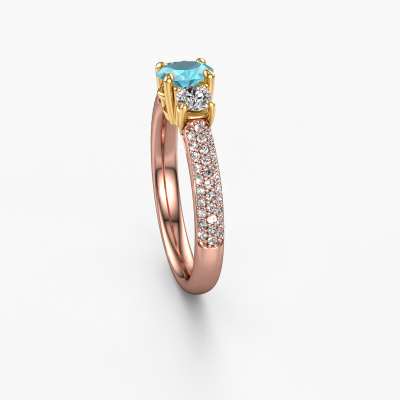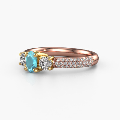 This 14 Carat rose gold ring is called Marielle OVL and is set with 6.5x4.5 mm blue topaz. Does your girlfriend fancy exclusive jewellery? Or would you like to show her that she deserves the finest jewellery? This rose gold ring is pure craftsmanship, love and passion combined with the latest techniques coming together in perfect harmony. It requires a keen eye, patience and a skilful hand to mould this ring into perfection. Just the job for our expert goldsmith! The blue topaz set gemstones gives this rose gold ring an extra glamorous appearance. Customize the style of the pavé engagement ring to her liking with a wide variety of precious metals and gemstones which you select. That is how you create a unique ring for the most exclusive woman in your life! This jewel is made just for you by our master goldsmiths in our own studio.Are you on a budget? Please feel free to contact us, so we can go discuss your options. We offer our engagement rings at guaranteed best price, because we make them to order. You won't find such a price anywhere else!Have you found a specific engagement ring somewhere which you would like to give to your loved one? Please feel free to express your wishes to our jewel designers because we would be honoured to turn your design into a exclusive engagement ring. You can follow the development of your ring design because we use 3D drawings. This gives you a realistic preview of how your design will look. You can also preorder a dummy. A dummy is a plastic ring, which can be shaped according your ring design. You can try it on and check if its width and size are suitable for you. We will gladly send you a non-binding offer, based on a fair price/ quality ratio. It will amaze you, considering the quality of the ring and gemstones.To make it easier for you, we offer a 30 day return policy. Check our terms and conditions.