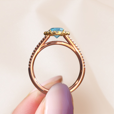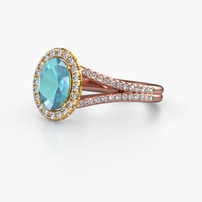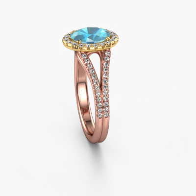 This 14 Carat rose gold ring is called Verla ovl 2 and is set with 8x6 mm blue topaz. Does your girlfriend fancy exclusive jewellery? Or would you like to show her that she deserves the finest jewellery? This rose gold ring is pure craftsmanship, love and passion combined with the latest techniques coming together in perfect harmony. It requires a keen eye, patience and a skilful hand to mould this ring into perfection. Just the job for our expert goldsmith! The blue topaz set gemstones gives this rose gold ring an extra glamorous appearance. Customize the style of the split band engagement ring to her liking with a wide variety of precious metals and gemstones which you select. That is how you create a unique ring for the most exclusive woman in your life! This jewel is made by a team of passionate goldsmiths and jewel designers. This will make your crown jewel truly eye-catching.By using our modern techniques, we can design and customize the finest quality jewels with the utmost care for you. Our engagement rings are always priced 30 percent lower than other jewellers. We make engagement rings to order so we don't have to maintain a large stock. If you have a certain budget, we are more than happy to advice you accordingly.Our team adds new designs to our online collection daily. Our designers and goldsmiths work together in creating the best design. We strive to offer a diverse collection of jewels. Perhaps you have a specific jewel design in mind. One you came across somewhere. Please contact us for a free consultation. We will make you an offer, based on a fair price/ quality ratio, that will baffle you.To make it easier for you, we offer a 30 day return policy. Check our terms and conditions.