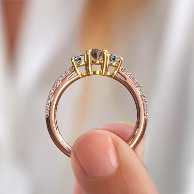 This 14 Carat rose gold ring is called Marielle OVL and is set with 1.27 crt brown diamond. Does your girlfriend fancy exclusive jewellery? Or would you like to show her that she deserves the finest jewellery? This rose gold ring is pure craftsmanship, love and passion combined with the latest techniques coming together in perfect harmony. It requires a keen eye, patience and a skilful hand to mould this ring into perfection. Just the job for our expert goldsmith! The brown diamonds set gemstones gives this rose gold ring an extra glamorous appearance. Customize the style of the pavé engagement ring to her liking with a wide variety of precious metals and gemstones which you select. That is how you create a unique ring for the most exclusive woman in your life! This jewel is made just for you by our master goldsmiths in our own studio.Are you on a budget? Please feel free to contact us, so we can go discuss your options. We offer our engagement rings at guaranteed best price, because we make them to order. You won't find such a price anywhere else!Have you found a specific engagement ring somewhere which you would like to give to your loved one? Please feel free to express your wishes to our jewel designers because we would be honoured to turn your design into a exclusive engagement ring. You can follow the development of your ring design because we use 3D drawings. This gives you a realistic preview of how your design will look. You can also preorder a dummy. A dummy is a plastic ring, which can be shaped according your ring design. You can try it on and check if its width and size are suitable for you. We will gladly send you a non-binding offer, based on a fair price/ quality ratio. It will amaze you, considering the quality of the ring and gemstones.To make it easier for you, we offer a 30 day return policy. Check our terms and conditions.