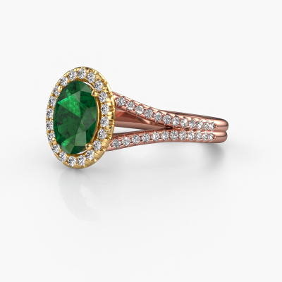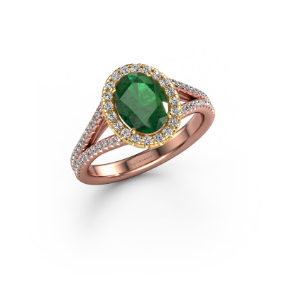 This 14 Carat rose gold ring is called Verla ovl 2 and is set with 8x6 mm emerald. Does your girlfriend fancy exclusive jewellery? Or would you like to show her that she deserves the finest jewellery? This rose gold ring is pure craftsmanship, love and passion combined with the latest techniques coming together in perfect harmony. It requires a keen eye, patience and a skilful hand to mould this ring into perfection. Just the job for our expert goldsmith! The emerald set gemstones gives this rose gold ring an extra glamorous appearance. Customize the style of the split band engagement ring to her liking with a wide variety of precious metals and gemstones which you select. That is how you create a unique ring for the most exclusive woman in your life! This jewel is made by a team of passionate goldsmiths and jewel designers. This will make your crown jewel truly eye-catching.By using our modern techniques, we can design and customize the finest quality jewels with the utmost care for you. Our engagement rings are always priced 30 percent lower than other jewellers. We make engagement rings to order so we don't have to maintain a large stock. If you have a certain budget, we are more than happy to advice you accordingly.Our team adds new designs to our online collection daily. Our designers and goldsmiths work together in creating the best design. We strive to offer a diverse collection of jewels. Perhaps you have a specific jewel design in mind. One you came across somewhere. Please contact us for a free consultation. We will make you an offer, based on a fair price/ quality ratio, that will baffle you.To make it easier for you, we offer a 30 day return policy. Check our terms and conditions.