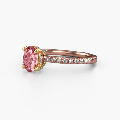 This 14 Carat rose gold ring is called Saskia 1 ovl and is set with 7x5 mm pink lab grown diamond. Does your girlfriend fancy exclusive jewellery? Or would you like to show her that she deserves the finest jewellery? This rose gold ring is pure craftsmanship, love and passion combined with the latest techniques coming together in perfect harmony. It requires a keen eye, patience and a skilful hand to mould this ring into perfection. Just the job for our expert goldsmith! The pink lab grown diamonds set gemstones gives this rose gold ring an extra glamorous appearance. Customize the style of the daring engagement ring to her liking with a wide variety of precious metals and gemstones which you select. That is how you create a unique ring for the most exclusive woman in your life! This jewel is made by a team of passionate goldsmiths and jewel designers. This will make your crown jewel truly eye-catching.After receiving your order, our goldsmiths will passionately start the creative process of making your engagement ring in our own studio. Because we don't have a big stockpile, these costs will not be passed on to you. Our pricing is proof of that! We offer top quality jewels at lowest price, guaranteed.Different styles of new rings are made daily by our team. Perhaps you have found a pavé solitaire engagement ring somewhere. One you would like to give to your loved one. Please feel free to share your thoughts and design with our jewel designers. We would love to turn your design into a luxury engagement ring. You can follow the development of your ring design because we use very detailed 3D drawings. On top of that, you can order a dummy of the design. A dummy is a plastic ring, which can be shaped according your ring design. You can try it on and check if the engagement ring is up to standard. We will gladly send you a non-binding offer, based on a fair price/ quality ratio. The offer will baffle you, considering the quality of the ring and gemstones.To make it easier for you, we offer a 30 day return policy. Check our terms and conditions.