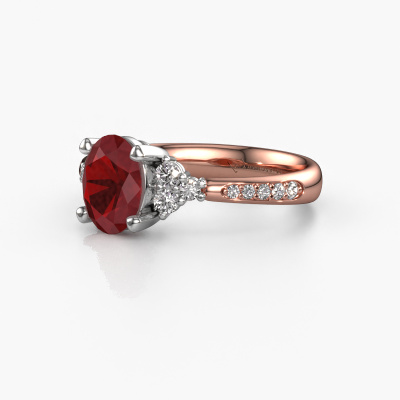 This 14 Carat rose gold ring is called Aleida OVL 2 and is set with 8x6 mm ruby. Does your girlfriend fancy exclusive jewellery? Or would you like to show her that she deserves the finest jewellery? This rose gold ring is pure craftsmanship, love and passion combined with the latest techniques coming together in perfect harmony. It requires a keen eye, patience and a skilful hand to mould this ring into perfection. Just the job for our expert goldsmith! The ruby set gemstones gives this rose gold ring an extra glamorous appearance. Customize the style of the charming engagement ring to her liking with a wide variety of precious metals and gemstones which you select. That is how you create a unique ring for the most exclusive woman in your life! This jewel is made just for you by our master goldsmiths in our own studio.By using a combination of the latest modern techniques, combined with ancient crafting, we can make all our engagement rings in our own studio. Each jewel is made to order. This is advantageous because we can offer you a price you won't find anywhere else.Do you have a specific ring in mind? One you came across somewhere. Please feel free to tell us your wishes and we will turn your design into a unique engagement ring. You can follow the development of your ring design because we use 3D drawings. This gives you a realistic preview of your design. We will gladly send you a non-binding offer, based on a fair price/ quality ratio. It will amaze you.To make it easier for you, we offer a 30 day return policy. Check our terms and conditions.