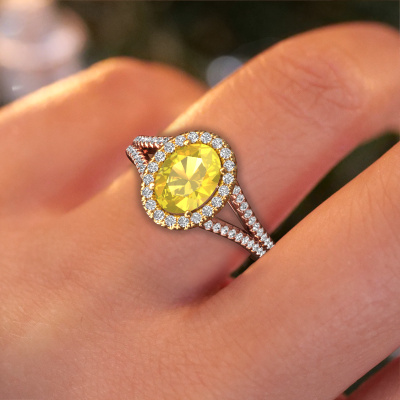 This 14 Carat rose gold ring is called Verla ovl 2 and is set with 8x6 mm yellow sapphire. Does your girlfriend fancy exclusive jewellery? Or would you like to show her that she deserves the finest jewellery? This rose gold ring is pure craftsmanship, love and passion combined with the latest techniques coming together in perfect harmony. It requires a keen eye, patience and a skilful hand to mould this ring into perfection. Just the job for our expert goldsmith! The yellow sapphire set gemstones gives this rose gold ring an extra glamorous appearance. Customize the style of the split band engagement ring to her liking with a wide variety of precious metals and gemstones which you select. That is how you create a unique ring for the most exclusive woman in your life! This jewel is made by a team of passionate goldsmiths and jewel designers. This will make your crown jewel truly eye-catching.By using our modern techniques, we can design and customize the finest quality jewels with the utmost care for you. Our engagement rings are always priced 30 percent lower than other jewellers. We make engagement rings to order so we don't have to maintain a large stock. If you have a certain budget, we are more than happy to advice you accordingly.Our team adds new designs to our online collection daily. Our designers and goldsmiths work together in creating the best design. We strive to offer a diverse collection of jewels. Perhaps you have a specific jewel design in mind. One you came across somewhere. Please contact us for a free consultation. We will make you an offer, based on a fair price/ quality ratio, that will baffle you.To make it easier for you, we offer a 30 day return policy. Check our terms and conditions.