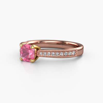 This 14 Carat rose gold ring is called Shonta CUS and is set with 5.5 mm pink sapphire. This filigree rose gold engagement ring is a true work of art! A beautifully adorned design of intricate wires. With dedication, patience and the utmost precision, our expert goldsmith will design a ring just for you. The adornment of small wiring is crafted to perfection by hand. It's a lengthy process which includes welding, crafting and polishing until our Goldsmiths are completely satisfied with the result: a perfect eye-catching ring that makes her shine with delight. Therefore the vintage filigree engagement ring is an extraordinary gift to bestow upon the love of your life. A handmade one-of-a-kind personalized ring, to be given to that special someone on that special moment when you pop the question. Isn't that wonderful? This piece of jewellery is created to add sparkle to your finger, each jewel is lovingly made by hand by our goldsmiths.After receiving your order, our goldsmiths will start the creative process of making your Shonta CUS engagement ring. We don't keep stock. This is advantageous because these costs will not be passed on to you. Therefore, we can offer jewellery at exceptionally low prices.Our designers and goldsmiths work together each day, creating new jewels. Perhaps you have found a nice vintage engagement ring somewhere, which can be used to customize your unique ring. Please feel free to contact us. We will make you an offer, based on a fair price/ quality ratio, which will amaze you.To make it easier for you, we offer a 30 day return policy. Check our terms and conditions.