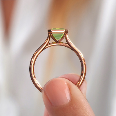 This 14 Carat rose gold ring is called Lavon EME and is set with peridot. Are you in the market for a unique rose gold engagement ring with a trendy appearance? Then this ring is perfect for you. Simply customize to your or her liking. This trendy fashionable engagement ring is set with exquisite peridot. It has been carefully selected because your engagement ring must be adorned with nothing but the most beautiful gemstone. Our expert goldsmith will create your ring in our own studio where the peridot will be set with great care. The ring will then be polished to perfection to give it that extra sparkle. The perfect ring for your significant other! After receiving your order, our goldsmiths will start the creative process of making your Lavon EME engagement ring. We don't keep stock. This is advantageous because these costs will not be passed on to you. Therefore, we can offer jewellery at exceptionally low prices.Our team adds new designs to our online collection daily. Our designers and goldsmiths work together in creating the best design. We strive to offer a diverse collection of jewels. Perhaps you have a specific jewel design in mind. One you came across somewhere. Please contact us for a free consultation. We will make you an offer, based on a fair price/ quality ratio, that will baffle you.To make it easier for you, we offer a 30 day return policy. Check our terms and conditions.