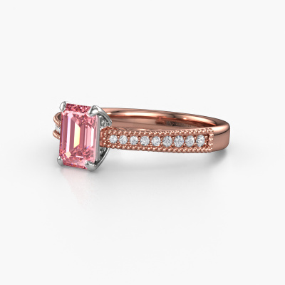 This 14 Carat rose gold ring is called Shonta EME and is set with pink lab grown diamond. An extraordinary rose gold vintage ring. One that will surely make the love of your life shine like a diamond! That is what we hope to achieve. This vintage engagement ring is set with exquisite pink lab grown diamonds. Whichever gemstone you choose from our selection, is up to you. The gemstone is selected with great care because we believe your engagement ring must be adorned with nothing but the most beautiful gemstone. Wouldn't you agree? Our expert goldsmith will design your ring in our own artisan studio, where the pink lab grown diamond will be set with great precision. The ring will then be polished till it is absolutely perfect. Nothing but the best for the love of your life! This jewel is made by a team of passionate goldsmiths and jewel designers. This will make your crown jewel truly eye-catching.Are you on a budget? Please feel free to contact us, so we can go discuss your options. We offer our engagement rings at guaranteed best price, because we make them to order. You won't find such a price anywhere else!Have you found a specific engagement ring somewhere which you would like to give to your loved one? Please feel free to express your wishes to our jewel designers because we would be honoured to turn your design into a vintage engagement ring. You can follow the development of your ring design because we use 3D drawings. This gives you a realistic preview of how your design will look. You can also preorder a dummy. A dummy is a plastic ring, which can be shaped according your ring design. You can try it on and check if its width and size are suitable for you. We will gladly send you a non-binding offer, based on a fair price/ quality ratio. It will amaze you, considering the quality of the ring and gemstones.To make it easier for you, we offer a 30 day return policy. Check our terms and conditions.