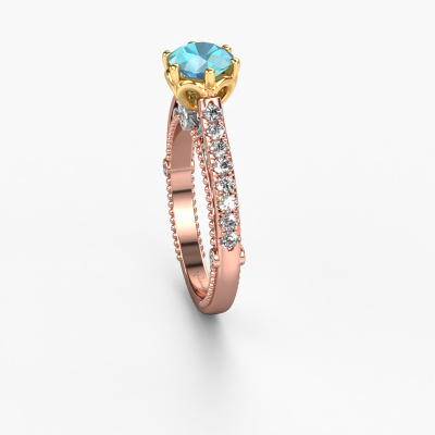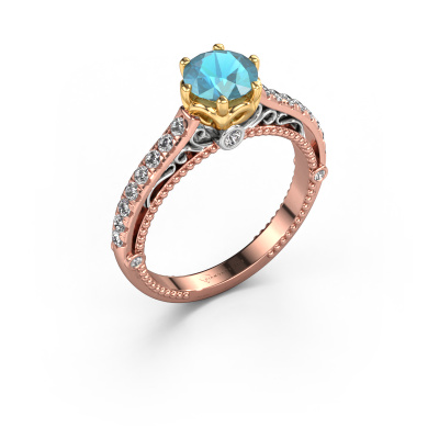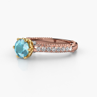 This 14 Carat rose gold ring is called Venita and is set with blue topaz. An extraordinary rose gold vintage ring. One that will surely make the love of your life shine like a diamond! That is what we hope to achieve. This vintage engagement ring is set with exquisite blue topaz. Whichever gemstone you choose from our selection, is up to you. The gemstone is selected with great care because we believe your engagement ring must be adorned with nothing but the most beautiful gemstone. Wouldn't you agree? Our expert goldsmith will design your ring in our own artisan studio, where the blue topaz will be set with great precision. The ring will then be polished till it is absolutely perfect. Nothing but the best for the love of your life! This jewel is made just for you by our master goldsmiths in our own studio.After receiving your order, our goldsmiths will passionately start the creative process of making your engagement ring in our own studio. Because we don't have a big stockpile, these costs will not be passed on to you. Our pricing is proof of that! We offer top quality jewels at lowest price, guaranteed.Our team adds new designs to our online collection daily. Our designers and goldsmiths work together in creating the best design. We strive to offer a diverse collection of jewels. Perhaps you have a specific jewel design in mind. One you came across somewhere. Please contact us for a free consultation. We will make you an offer, based on a fair price/ quality ratio, that will baffle you.To make it easier for you, we offer a 30 day return policy. Check our terms and conditions.