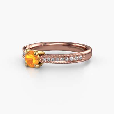 This 14 Carat rose gold ring is called Shonta RND and is set with 4.7 mm citrin. This filigree rose gold engagement ring is a true work of art! A beautifully adorned design of intricate wires. With dedication, patience and the utmost precision, our expert goldsmith will design a ring just for you. The adornment of small wiring is crafted to perfection by hand. It's a lengthy process which includes welding, crafting and polishing until our Goldsmiths are completely satisfied with the result: a perfect eye-catching ring that makes her shine with delight. Therefore the vintage filigree engagement ring is an extraordinary gift to bestow upon the love of your life. A handmade one-of-a-kind personalized ring, to be given to that special someone on that special moment when you pop the question. Isn't that wonderful? This piece of jewellery is made just for you by our master goldsmiths in our own studio.By using our modern techniques, we can design and customize the finest quality jewels with the utmost care for you. Our engagement rings are always priced 30 percent lower than other jewellers. We make engagement rings to order so we don't have to maintain a large stock. If you have a certain budget, we are more than happy to advice you accordingly.Our team adds new designs to our online collection daily. Our designers and goldsmiths work together in creating the best design. We strive to offer a diverse collection of jewels. Perhaps you have a specific jewel design in mind. One you came across somewhere. Please contact us for a free consultation. We will make you an offer, based on a fair price/ quality ratio, that will baffle you.To make it easier for you, we offer a 30 day return policy. Check our terms and conditions.