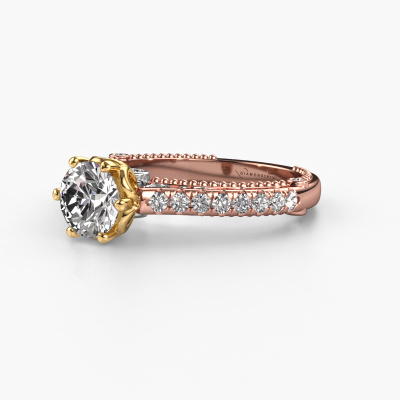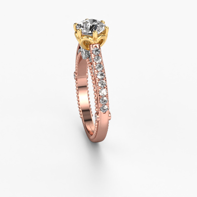 This 14 Carat rose gold ring is called Venita and is set with diamond. An extraordinary rose gold vintage ring. One that will surely make the love of your life shine like a diamond! That is what we hope to achieve. This vintage engagement ring is set with exquisite diamonds. Whichever gemstone you choose from our selection, is up to you. The gemstone is selected with great care because we believe your engagement ring must be adorned with nothing but the most beautiful gemstone. Wouldn't you agree? Our expert goldsmith will design your ring in our own artisan studio, where the diamond will be set with great precision. The ring will then be polished till it is absolutely perfect. Nothing but the best for the love of your life! This jewel is made just for you by our master goldsmiths in our own studio.After receiving your order, our goldsmiths will passionately start the creative process of making your engagement ring in our own studio. Because we don't have a big stockpile, these costs will not be passed on to you. Our pricing is proof of that! We offer top quality jewels at lowest price, guaranteed.Our team adds new designs to our online collection daily. Our designers and goldsmiths work together in creating the best design. We strive to offer a diverse collection of jewels. Perhaps you have a specific jewel design in mind. One you came across somewhere. Please contact us for a free consultation. We will make you an offer, based on a fair price/ quality ratio, that will baffle you.To make it easier for you, we offer a 30 day return policy. Check our terms and conditions.