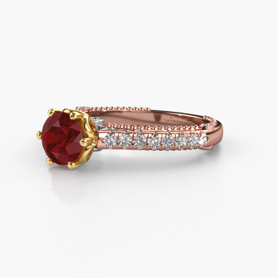 This 14 Carat rose gold ring is called Venita and is set with ruby. An extraordinary rose gold vintage ring. One that will surely make the love of your life shine like a diamond! That is what we hope to achieve. This vintage engagement ring is set with exquisite ruby. Whichever gemstone you choose from our selection, is up to you. The gemstone is selected with great care because we believe your engagement ring must be adorned with nothing but the most beautiful gemstone. Wouldn't you agree? Our expert goldsmith will design your ring in our own artisan studio, where the ruby will be set with great precision. The ring will then be polished till it is absolutely perfect. Nothing but the best for the love of your life! This jewel is made just for you by our master goldsmiths in our own studio.After receiving your order, our goldsmiths will passionately start the creative process of making your engagement ring in our own studio. Because we don't have a big stockpile, these costs will not be passed on to you. Our pricing is proof of that! We offer top quality jewels at lowest price, guaranteed.Our team adds new designs to our online collection daily. Our designers and goldsmiths work together in creating the best design. We strive to offer a diverse collection of jewels. Perhaps you have a specific jewel design in mind. One you came across somewhere. Please contact us for a free consultation. We will make you an offer, based on a fair price/ quality ratio, that will baffle you.To make it easier for you, we offer a 30 day return policy. Check our terms and conditions.