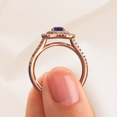 This 14 Carat rose gold ring is called Cleopatra and is set with sapphire. An extraordinary rose gold vintage ring. One that will surely make the love of your life shine like a diamond! That is what we hope to achieve. This vintage engagement ring is set with exquisite sapphire. Whichever gemstone you choose from our selection, is up to you. The gemstone is selected with great care because we believe your engagement ring must be adorned with nothing but the most beautiful gemstone. Wouldn't you agree? Our expert goldsmith will design your ring in our own artisan studio, where the sapphire will be set with great precision. The ring will then be polished till it is absolutely perfect. Nothing but the best for the love of your life! This jewel is made just for you, with attention to detail and design.After receiving your order, our goldsmiths will passionately start the creative process of making your engagement ring in our own studio. Because we don't have a big stockpile, these costs will not be passed on to you. Our pricing is proof of that! We offer top quality jewels at lowest price, guaranteed.Have you found a specific engagement ring somewhere which you would like to give to your loved one? Please feel free to express your wishes to our jewel designers because we would be honoured to turn your design into a vintage engagement ring. You can follow the development of your ring design because we use 3D drawings. This gives you a realistic preview of how your design will look. You can also preorder a dummy. A dummy is a plastic ring, which can be shaped according your ring design. You can try it on and check if its width and size are suitable for you. We will gladly send you a non-binding offer, based on a fair price/ quality ratio. It will amaze you, considering the quality of the ring and gemstones.To make it easier for you, we offer a 30 day return policy. Check our terms and conditions.
