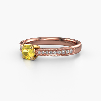 This 14 Carat rose gold ring is called Shonta RND and is set with 4.7 mm yellow sapphire. This filigree rose gold engagement ring is a true work of art! A beautifully adorned design of intricate wires. With dedication, patience and the utmost precision, our expert goldsmith will design a ring just for you. The adornment of small wiring is crafted to perfection by hand. It's a lengthy process which includes welding, crafting and polishing until our Goldsmiths are completely satisfied with the result: a perfect eye-catching ring that makes her shine with delight. Therefore the vintage filigree engagement ring is an extraordinary gift to bestow upon the love of your life. A handmade one-of-a-kind personalized ring, to be given to that special someone on that special moment when you pop the question. Isn't that wonderful? This piece of jewellery is made just for you by our master goldsmiths in our own studio.By using our modern techniques, we can design and customize the finest quality jewels with the utmost care for you. Our engagement rings are always priced 30 percent lower than other jewellers. We make engagement rings to order so we don't have to maintain a large stock. If you have a certain budget, we are more than happy to advice you accordingly.Our team adds new designs to our online collection daily. Our designers and goldsmiths work together in creating the best design. We strive to offer a diverse collection of jewels. Perhaps you have a specific jewel design in mind. One you came across somewhere. Please contact us for a free consultation. We will make you an offer, based on a fair price/ quality ratio, that will baffle you.To make it easier for you, we offer a 30 day return policy. Check our terms and conditions.