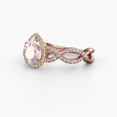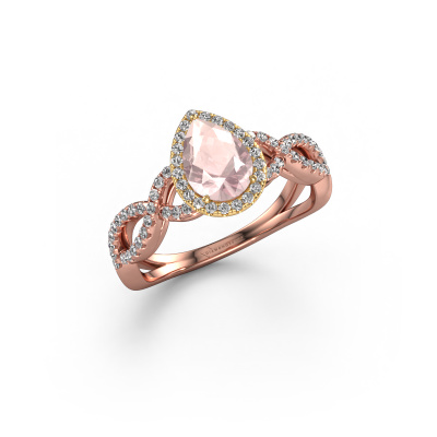 This 14 Carat rose gold ring is called Dionne pear and is set with 7x5 mm morganite champagne. Does your girlfriend fancy exclusive jewellery? Or would you like to show her that she deserves the finest jewellery? This rose gold ring is pure craftsmanship, love and passion combined with the latest techniques coming together in perfect harmony. It requires a keen eye, patience and a skilful hand to mould this ring into perfection. Just the job for our expert goldsmith! The morganite champagne set gemstones gives this rose gold ring an extra glamorous appearance. Customize the style of the twist engagement ring to her liking with a wide variety of precious metals and gemstones which you select. That is how you create a unique ring for the most exclusive woman in your life! This jewel is created to add sparkle to your finger, each jewel is lovingly made by hand by our goldsmiths.Are you on a budget? Please feel free to contact us, so we can go discuss your options. We offer our engagement rings at guaranteed best price, because we make them to order. You won't find such a price anywhere else!Different styles of new rings are made daily by our team. Perhaps you have found a pavé solitaire engagement ring somewhere. One you would like to give to your loved one. Please feel free to share your thoughts and design with our jewel designers. We would love to turn your design into a exclusive engagement ring. You can follow the development of your ring design because we use very detailed 3D drawings. On top of that, you can order a dummy of the design. A dummy is a plastic ring, which can be shaped according your ring design. You can try it on and check if the engagement ring is up to standard. We will gladly send you a non-binding offer, based on a fair price/ quality ratio. The offer will baffle you, considering the quality of the ring and gemstones.To make it easier for you, we offer a 30 day return policy. Check our terms and conditions.