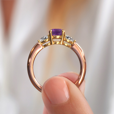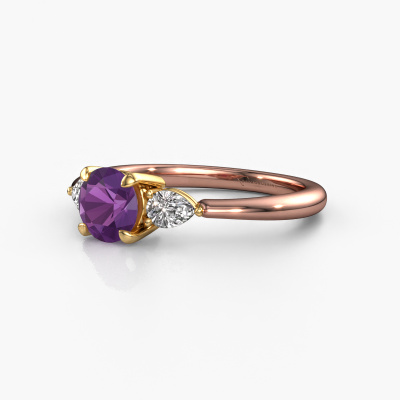 This 14 Carat rose gold ring is called Chanou RND and is set with 6 mm amethyst. Does your girlfriend fancy exclusive jewellery? Or would you like to show her that she deserves the finest jewellery? This rose gold ring is pure craftsmanship, love and passion combined with the latest techniques coming together in perfect harmony. It requires a keen eye, patience and a skilful hand to mould this ring into perfection. Just the job for our expert goldsmith! The amethysten set gemstones gives this rose gold ring an extra glamorous appearance. Customize the style of the charming engagement ring to her liking with a wide variety of precious metals and gemstones which you select. That is how you create a unique ring for the most exclusive woman in your life! This jewel is made to shine bright around your finger. Each jewel is hand made with love by our goldsmiths.By using a combination of the latest modern techniques, combined with ancient crafting, we can make all our engagement rings in our own studio. Each jewel is made to order. This is advantageous because we can offer you a price you won't find anywhere else.Our team adds new designs to our online collection daily. Our designers and goldsmiths work together in creating the best design. We strive to offer a diverse collection of jewels. Perhaps you have a specific jewel design in mind. One you came across somewhere. Please contact us for a free consultation. We will make you an offer, based on a fair price/ quality ratio, that will baffle you.To make it easier for you, we offer a 30 day return policy. Check our terms and conditions.