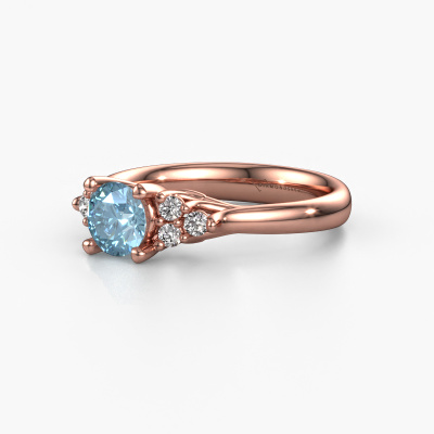 This 14 Carat rose gold ring is called Monika RND and is set with 5.5 mm blue lab grown diamond. Does your girlfriend fancy exclusive jewellery? Or would you like to show her that she deserves the finest jewellery? This rose gold ring is pure craftsmanship, love and passion combined with the latest techniques coming together in perfect harmony. It requires a keen eye, patience and a skilful hand to mould this ring into perfection. Just the job for our expert goldsmith! The blue lab grown diamonds set gemstones gives this rose gold ring an extra glamorous appearance. Customize the style of the ajour engagement ring to her liking with a wide variety of precious metals and gemstones which you select. That is how you create a unique ring for the most exclusive woman in your life! This jewel is made with passion and love by one of our master goldsmiths.Are you on a budget? Please feel free to contact us, so we can go discuss your options. We offer our engagement rings at guaranteed best price, because we make them to order. You won't find such a price anywhere else!Have you found a specific engagement ring somewhere which you would like to give to your loved one? Please feel free to express your wishes to our jewel designers because we would be honoured to turn your design into a classic engagement ring. You can follow the development of your ring design because we use 3D drawings. This gives you a realistic preview of how your design will look. You can also preorder a dummy. A dummy is a plastic ring, which can be shaped according your ring design. You can try it on and check if its width and size are suitable for you. We will gladly send you a non-binding offer, based on a fair price/ quality ratio. It will amaze you, considering the quality of the ring and gemstones.To make it easier for you, we offer a 30 day return policy. Check our terms and conditions.