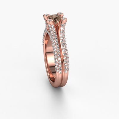 This 14 Carat rose gold ring is called Stefanie 2 and is set with 1.50 crt brown diamond. Does your girlfriend fancy exclusive jewellery? Or would you like to show her that she deserves the finest jewellery? This rose gold ring is pure craftsmanship, love and passion combined with the latest techniques coming together in perfect harmony. It requires a keen eye, patience and a skilful hand to mould this ring into perfection. Just the job for our expert goldsmith! The brown diamonds set gemstones gives this rose gold ring an extra glamorous appearance. Customize the style of the split band engagement ring to her liking with a wide variety of precious metals and gemstones which you select. That is how you create a unique ring for the most exclusive woman in your life! This jewel is made just for you by our master goldsmiths in our own studio.After receiving your order, our goldsmiths will passionately start the creative process of making your engagement ring in our own studio. Because we don't have a big stockpile, these costs will not be passed on to you. Our pricing is proof of that! We offer top quality jewels at lowest price, guaranteed.Different styles of new rings are made daily by our team. Perhaps you have found a pavé solitaire engagement ring somewhere. One you would like to give to your loved one. Please feel free to share your thoughts and design with our jewel designers. We would love to turn your design into a unique engagement ring. You can follow the development of your ring design because we use very detailed 3D drawings. On top of that, you can order a dummy of the design. A dummy is a plastic ring, which can be shaped according your ring design. You can try it on and check if the engagement ring is up to standard. We will gladly send you a non-binding offer, based on a fair price/ quality ratio. The offer will baffle you, considering the quality of the ring and gemstones.To make it easier for you, we offer a 30 day return policy. Check our terms and conditions.