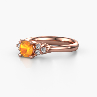 This 14 Carat rose gold ring is called Monika RND and is set with 5.5 mm citrin. Does your girlfriend fancy exclusive jewellery? Or would you like to show her that she deserves the finest jewellery? This rose gold ring is pure craftsmanship, love and passion combined with the latest techniques coming together in perfect harmony. It requires a keen eye, patience and a skilful hand to mould this ring into perfection. Just the job for our expert goldsmith! The citrin set gemstones gives this rose gold ring an extra glamorous appearance. Customize the style of the ajour engagement ring to her liking with a wide variety of precious metals and gemstones which you select. That is how you create a unique ring for the most exclusive woman in your life! This jewel is made with passion and love by one of our master goldsmiths.Are you on a budget? Please feel free to contact us, so we can go discuss your options. We offer our engagement rings at guaranteed best price, because we make them to order. You won't find such a price anywhere else!Have you found a specific engagement ring somewhere which you would like to give to your loved one? Please feel free to express your wishes to our jewel designers because we would be honoured to turn your design into a classic engagement ring. You can follow the development of your ring design because we use 3D drawings. This gives you a realistic preview of how your design will look. You can also preorder a dummy. A dummy is a plastic ring, which can be shaped according your ring design. You can try it on and check if its width and size are suitable for you. We will gladly send you a non-binding offer, based on a fair price/ quality ratio. It will amaze you, considering the quality of the ring and gemstones.To make it easier for you, we offer a 30 day return policy. Check our terms and conditions.