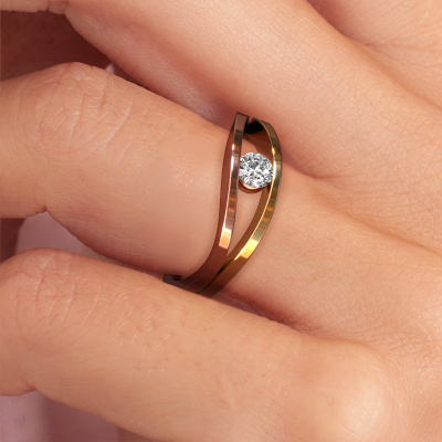This 14 Carat rose gold ring is called Sigrid 1 and is set with 3.7 mm custom diamond. This design rose gold engagement ring is a true masterpiece! Our expert goldsmith uses special techniques during crafting of this tension set ring to make sure the custom diamond of this rose gold ring is fixed properly. The effect is that light fall reflects beautifully on the gemstone, which gives the ring its maximum shine and glamorous appearance. The result is a unique ring, with a trendy appearance, passionately handcrafted to perfection by our artisan goldsmith. A one-of-a-kind ring, designed for the love of your life! This jewel is made to shine bright around your finger. Each jewel is hand made with love by our goldsmiths.By using our modern techniques, we can design and customize the finest quality jewels with the utmost care for you. Our engagement rings are always priced 30 percent lower than other jewellers. We make engagement rings to order so we don't have to maintain a large stock. If you have a certain budget, we are more than happy to advice you accordingly.Different styles of new rings are made daily by our team. Perhaps you have found a solitaire engagement ring somewhere. One you would like to give to your loved one. Please feel free to share your thoughts and design with our jewel designers. We would love to turn your design into a design engagement ring. You can follow the development of your ring design because we use very detailed 3D drawings. On top of that, you can order a dummy of the design. A dummy is a plastic ring, which can be shaped according your ring design. You can try it on and check if the engagement ring is up to standard. We will gladly send you a non-binding offer, based on a fair price/ quality ratio. The offer will baffle you, considering the quality of the ring and gemstones.To make it easier for you, we offer a 30 day return policy. Check our terms and conditions.
