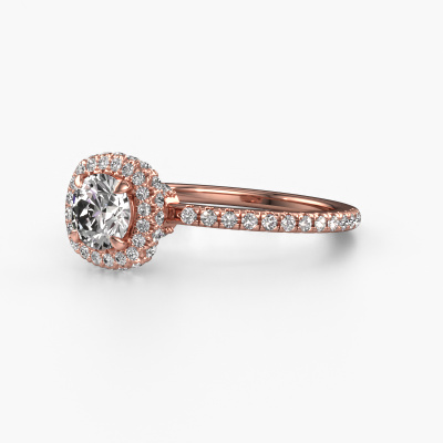 The ring shown above is called the Talitha RND. We call this type of ring a halo ring because it has one centre gemstone and a band that is also pave set with gemstones. The 14 Carat rose gold engagement ring is set with a round 0.60 crt diamond centre stone and the band is pave set with lab-grown diamonds. What makes this exclusive rose gold halo ring special are the smaller sized stones embracing the centre stone. This gorgeous engagement ring is called a halo ring because the smaller gemstones give the centre stone a halo of surrounding light. In order for the smaller stones to enhance the centre stone, they have to be placed so there is no interference of light. And that's when our expert goldsmiths come in. Each individual stone is carefully set in the ring by hand. During manufacturing, light fall is constantly monitored to make sure the special halo is still visible. In the end you get a unique engagement ring, with a diamond of your choosing at its centre. You can imagine the effect of a ring of such significance when you give it to her on her special day to shine. Are you on a budget? Please feel free to contact us, so we can go discuss your options. We offer our engagement rings at guaranteed best price, because we make them to order. You won't find such a price anywhere else!Our team adds new designs to our online collection daily. Our designers and goldsmiths work together in creating the best design. We strive to offer a diverse collection of jewels. Perhaps you have a specific jewel design in mind. One you came across somewhere. Please contact us for a free consultation. We will make you an offer, based on a fair price/ quality ratio, that will baffle you.To make it easier for you, we offer a 30 day return policy. Check our terms and conditions.