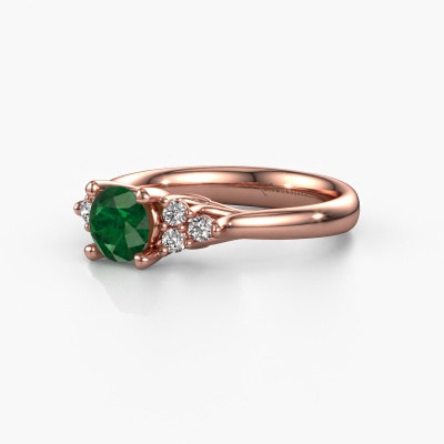 This 14 Carat rose gold ring is called Monika RND and is set with 5.5 mm emerald. Does your girlfriend fancy exclusive jewellery? Or would you like to show her that she deserves the finest jewellery? This rose gold ring is pure craftsmanship, love and passion combined with the latest techniques coming together in perfect harmony. It requires a keen eye, patience and a skilful hand to mould this ring into perfection. Just the job for our expert goldsmith! The emerald set gemstones gives this rose gold ring an extra glamorous appearance. Customize the style of the ajour engagement ring to her liking with a wide variety of precious metals and gemstones which you select. That is how you create a unique ring for the most exclusive woman in your life! This jewel is made with passion and love by one of our master goldsmiths.Are you on a budget? Please feel free to contact us, so we can go discuss your options. We offer our engagement rings at guaranteed best price, because we make them to order. You won't find such a price anywhere else!Have you found a specific engagement ring somewhere which you would like to give to your loved one? Please feel free to express your wishes to our jewel designers because we would be honoured to turn your design into a classic engagement ring. You can follow the development of your ring design because we use 3D drawings. This gives you a realistic preview of how your design will look. You can also preorder a dummy. A dummy is a plastic ring, which can be shaped according your ring design. You can try it on and check if its width and size are suitable for you. We will gladly send you a non-binding offer, based on a fair price/ quality ratio. It will amaze you, considering the quality of the ring and gemstones.To make it easier for you, we offer a 30 day return policy. Check our terms and conditions.