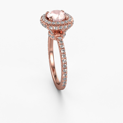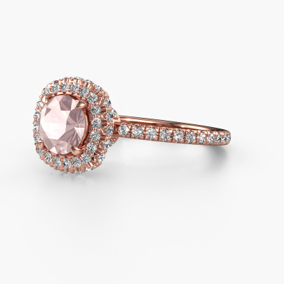The ring shown above is called the Talitha RND. We call this type of ring a halo ring because it has one centre gemstone and a band that is also pave set with gemstones. The 14 Carat rose gold engagement ring is set with a round 6.5 mm morganite champagne centre stone and the band is pave set with lab-grown diamonds. What makes this exclusive rose gold halo ring special are the smaller sized stones embracing the centre stone. This gorgeous engagement ring is called a halo ring because the smaller gemstones give the centre stone a halo of surrounding light. In order for the smaller stones to enhance the centre stone, they have to be placed so there is no interference of light. And that's when our expert goldsmiths come in. Each individual stone is carefully set in the ring by hand. During manufacturing, light fall is constantly monitored to make sure the special halo is still visible. In the end you get a unique engagement ring, with a morganite champagne of your choosing at its centre. You can imagine the effect of a ring of such significance when you give it to her on her special day to shine. Are you on a budget? Please feel free to contact us, so we can go discuss your options. We offer our engagement rings at guaranteed best price, because we make them to order. You won't find such a price anywhere else!Our team adds new designs to our online collection daily. Our designers and goldsmiths work together in creating the best design. We strive to offer a diverse collection of jewels. Perhaps you have a specific jewel design in mind. One you came across somewhere. Please contact us for a free consultation. We will make you an offer, based on a fair price/ quality ratio, that will baffle you.To make it easier for you, we offer a 30 day return policy. Check our terms and conditions.