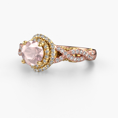 The ring shown above is called the Leora. We call this type of ring a halo ring because it has one centre gemstone and a band that is also pave set with gemstones. The 14 Carat rose gold engagement ring is set with a round 6.5 mm morganite champagne centre stone and the band is pave set with lab-grown diamonds. What makes this vintage rose gold halo ring special are the smaller sized stones embracing the centre stone. This gorgeous engagement ring is called a halo ring because the smaller gemstones give the centre stone a halo of surrounding light. In order for the smaller stones to enhance the centre stone, they have to be placed so there is no interference of light. And that's when our expert goldsmiths come in. Each individual stone is carefully set in the ring by hand. During manufacturing, light fall is constantly monitored to make sure the special halo is still visible. In the end you get a unique engagement ring, with a morganite champagne of your choosing at its centre. You can imagine the effect of a ring of such significance when you give it to her on her special day to shine. By using our modern techniques, we can design and customize the finest quality jewels with the utmost care for you. Our engagement rings are always priced 30 percent lower than other jewellers. We make engagement rings to order so we don't have to maintain a large stock. If you have a certain budget, we are more than happy to advice you accordingly.Our designers and goldsmiths work together each day, creating new jewels. Perhaps you have found a nice vintage engagement ring somewhere, which can be used to customize your unique ring. Please feel free to contact us. We will make you an offer, based on a fair price/ quality ratio, which will amaze you.To make it easier for you, we offer a 30 day return policy. Check our terms and conditions.