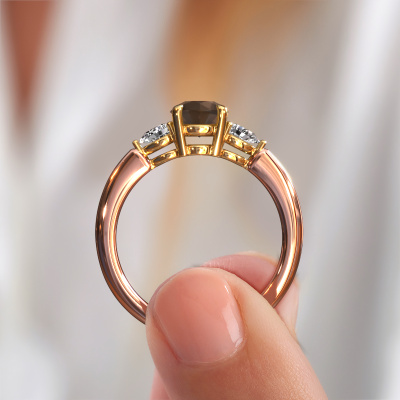 This 14 Carat rose gold ring is called Chanou RND and is set with 6 mm smokey quartz. Does your girlfriend fancy exclusive jewellery? Or would you like to show her that she deserves the finest jewellery? This rose gold ring is pure craftsmanship, love and passion combined with the latest techniques coming together in perfect harmony. It requires a keen eye, patience and a skilful hand to mould this ring into perfection. Just the job for our expert goldsmith! The smokey quartz set gemstones gives this rose gold ring an extra glamorous appearance. Customize the style of the charming engagement ring to her liking with a wide variety of precious metals and gemstones which you select. That is how you create a unique ring for the most exclusive woman in your life! This jewel is made to shine bright around your finger. Each jewel is hand made with love by our goldsmiths.By using a combination of the latest modern techniques, combined with ancient crafting, we can make all our engagement rings in our own studio. Each jewel is made to order. This is advantageous because we can offer you a price you won't find anywhere else.Our team adds new designs to our online collection daily. Our designers and goldsmiths work together in creating the best design. We strive to offer a diverse collection of jewels. Perhaps you have a specific jewel design in mind. One you came across somewhere. Please contact us for a free consultation. We will make you an offer, based on a fair price/ quality ratio, that will baffle you.To make it easier for you, we offer a 30 day return policy. Check our terms and conditions.