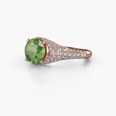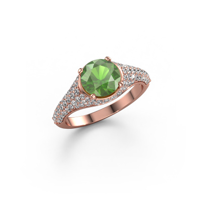 This 14 Carat rose gold ring is called Lovella and is set with 7 mm tourmaline green. Does your girlfriend fancy exclusive jewellery? Or would you like to show her that she deserves the finest jewellery? This rose gold ring is pure craftsmanship, love and passion combined with the latest techniques coming together in perfect harmony. It requires a keen eye, patience and a skilful hand to mould this ring into perfection. Just the job for our expert goldsmith! The tourmaline green set gemstones gives this rose gold ring an extra glamorous appearance. Customize the style of the micro pave engagement ring to her liking with a wide variety of precious metals and gemstones which you select. That is how you create a unique ring for the most exclusive woman in your life! This jewel is made just for you, with attention to detail and design.By using a combination of the latest modern techniques, combined with ancient crafting, we can make all our engagement rings in our own studio. Each jewel is made to order. This is advantageous because we can offer you a price you won't find anywhere else.Our team adds new designs to our online collection daily. Our designers and goldsmiths work together in creating the best design. We strive to offer a diverse collection of jewels. Perhaps you have a specific jewel design in mind. One you came across somewhere. Please contact us for a free consultation. We will make you an offer, based on a fair price/ quality ratio, that will baffle you.To make it easier for you, we offer a 30 day return policy. Check our terms and conditions.