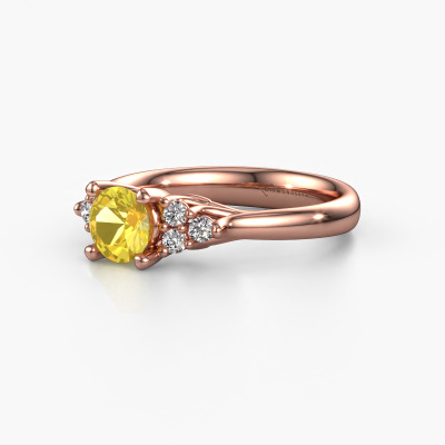 This 14 Carat rose gold ring is called Monika RND and is set with 5.5 mm yellow sapphire. Does your girlfriend fancy exclusive jewellery? Or would you like to show her that she deserves the finest jewellery? This rose gold ring is pure craftsmanship, love and passion combined with the latest techniques coming together in perfect harmony. It requires a keen eye, patience and a skilful hand to mould this ring into perfection. Just the job for our expert goldsmith! The yellow sapphire set gemstones gives this rose gold ring an extra glamorous appearance. Customize the style of the ajour engagement ring to her liking with a wide variety of precious metals and gemstones which you select. That is how you create a unique ring for the most exclusive woman in your life! This jewel is made with passion and love by one of our master goldsmiths.Are you on a budget? Please feel free to contact us, so we can go discuss your options. We offer our engagement rings at guaranteed best price, because we make them to order. You won't find such a price anywhere else!Have you found a specific engagement ring somewhere which you would like to give to your loved one? Please feel free to express your wishes to our jewel designers because we would be honoured to turn your design into a classic engagement ring. You can follow the development of your ring design because we use 3D drawings. This gives you a realistic preview of how your design will look. You can also preorder a dummy. A dummy is a plastic ring, which can be shaped according your ring design. You can try it on and check if its width and size are suitable for you. We will gladly send you a non-binding offer, based on a fair price/ quality ratio. It will amaze you, considering the quality of the ring and gemstones.To make it easier for you, we offer a 30 day return policy. Check our terms and conditions.