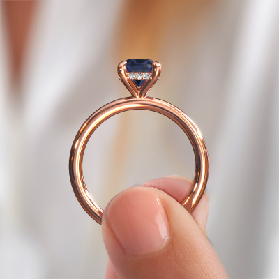 This 14 Carat rose gold ring is called Simone CUS 2 and is set with sapphire. Are you in the market for a unique rose gold engagement ring with a trendy appearance? Then this ring is perfect for you. Simply customize to your or her liking. This unique graceful engagement ring is set with exquisite sapphire. It has been carefully selected because your engagement ring must be adorned with nothing but the most beautiful gemstone. Our expert goldsmith will create your ring in our own studio where the sapphire will be set with great care. The ring will then be polished to perfection to give it that extra sparkle. The perfect ring for your significant other! By using a combination of the latest modern techniques, combined with ancient crafting, we can make all our engagement rings in our own studio. Each jewel is made to order. This is advantageous because we can offer you a price you won't find anywhere else.Our team adds new designs to our online collection daily. Our designers and goldsmiths work together in creating the best design. We strive to offer a diverse collection of jewels. Perhaps you have a specific jewel design in mind. One you came across somewhere. Please contact us for a free consultation. We will make you an offer, based on a fair price/ quality ratio, that will baffle you.To make it easier for you, we offer a 30 day return policy. Check our terms and conditions.