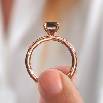 This 14 Carat rose gold ring is called Simone CUS 2 and is set with smokey quartz. Are you in the market for a unique rose gold engagement ring with a trendy appearance? Then this ring is perfect for you. Simply customize to your or her liking. This unique graceful engagement ring is set with exquisite smokey quartz. It has been carefully selected because your engagement ring must be adorned with nothing but the most beautiful gemstone. Our expert goldsmith will create your ring in our own studio where the smokey quartz will be set with great care. The ring will then be polished to perfection to give it that extra sparkle. The perfect ring for your significant other! By using a combination of the latest modern techniques, combined with ancient crafting, we can make all our engagement rings in our own studio. Each jewel is made to order. This is advantageous because we can offer you a price you won't find anywhere else.Our team adds new designs to our online collection daily. Our designers and goldsmiths work together in creating the best design. We strive to offer a diverse collection of jewels. Perhaps you have a specific jewel design in mind. One you came across somewhere. Please contact us for a free consultation. We will make you an offer, based on a fair price/ quality ratio, that will baffle you.To make it easier for you, we offer a 30 day return policy. Check our terms and conditions.