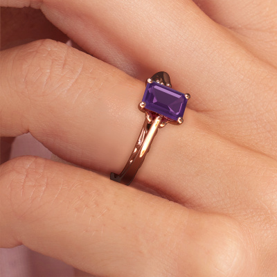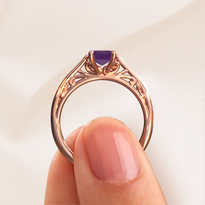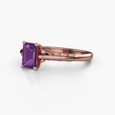 This 14 Carat rose gold ring is called Shannon eme and is set with amethyst. An extraordinary rose gold vintage ring. One that will surely make the love of your life shine like a diamond! That is what we hope to achieve. This fantasy engagement ring is set with exquisite amethysten. Whichever gemstone you choose from our selection, is up to you. The gemstone is selected with great care because we believe your engagement ring must be adorned with nothing but the most beautiful gemstone. Wouldn't you agree? Our expert goldsmith will design your ring in our own artisan studio, where the amethyst will be set with great precision. The ring will then be polished till it is absolutely perfect. Nothing but the best for the love of your life! This jewel is unique in every way! Simply customize to your liking,Are you on a budget? Please feel free to contact us, so we can go discuss your options. We offer our engagement rings at guaranteed best price, because we make them to order. You won't find such a price anywhere else!Our designers and goldsmiths work together each day, creating new jewels. Perhaps you have found a nice fantasy engagement ring somewhere, which can be used to customize your unique ring. Please feel free to contact us. We will make you an offer, based on a fair price/ quality ratio, which will amaze you.To make it easier for you, we offer a 30 day return policy. Check our terms and conditions.