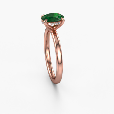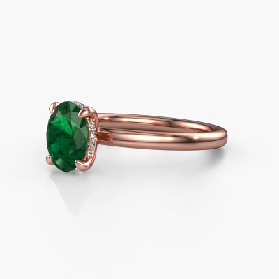 This 14 Carat rose gold ring is called Simone OVL 2 and is set with emerald. Are you in the market for a unique rose gold engagement ring with a trendy appearance? Then this ring is perfect for you. Simply customize to your or her liking. This contemporary graceful engagement ring is set with exquisite emerald. It has been carefully selected because your engagement ring must be adorned with nothing but the most beautiful gemstone. Our expert goldsmith will create your ring in our own studio where the emerald will be set with great care. The ring will then be polished to perfection to give it that extra sparkle. The perfect ring for your significant other! Because we design and deliver our own rings, we can offer you a engagement ring at a price you won't find anywhere else. A ring is made to order, which helps prevent excess supplies, so we can make you a great price offer. We understand it feels risky, buying your engagement ring online, but we will gladly assist in the designing process, taking your budget into consideration.Do you have a specific ring in mind? One you came across somewhere. Please feel free to tell us your wishes and we will turn your design into a unique engagement ring. You can follow the development of your ring design because we use 3D drawings. This gives you a realistic preview of your design. We will gladly send you a non-binding offer, based on a fair price/ quality ratio. It will amaze you.To make it easier for you, we offer a 30 day return policy. Check our terms and conditions.