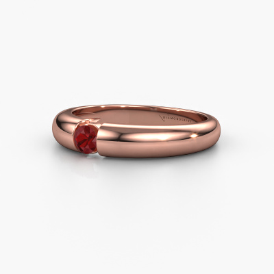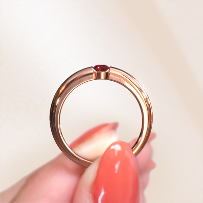 This 14 Carat rose gold ring is called Amelia and is set with ruby. Are you in the market for a unique rose gold engagement ring with a trendy appearance? Then this ring is perfect for you. Simply customize to your or her liking. This modern orb shaped engagement ring is set with exquisite ruby. It has been carefully selected because your engagement ring must be adorned with nothing but the most beautiful gemstone. Our expert goldsmith will create your ring in our own studio where the ruby will be set with great care. The ring will then be polished to perfection to give it that extra sparkle. The perfect ring for your significant other! By using a combination of the latest modern techniques, combined with ancient crafting, we can make all our engagement rings in our own studio. Each jewel is made to order. This is advantageous because we can offer you a price you won't find anywhere else.Do you have a specific ring in mind? One you came across somewhere. Please feel free to tell us your wishes and we will turn your design into a unique engagement ring. You can follow the development of your ring design because we use 3D drawings. This gives you a realistic preview of your design. We will gladly send you a non-binding offer, based on a fair price/ quality ratio. It will amaze you.To make it easier for you, we offer a 30 day return policy. Check our terms and conditions.