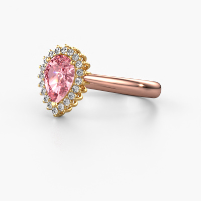 The ring shown above is called the Tilly per 1. We call this type of ring a cluster ring, the centre gemstone is surrounded by smaller sized stones. This 14 Carat rose gold version is set with a 8x6 mm pear pink lab grown diamond centre stone, embraced by smaller diamonds. The exclusive rose gold cluster engagement ring stands out because of its shape. Together, the smaller and bigger sized pink lab grown diamond gemstones form a flower and they appear to collide into one big sparkling gem. This exclusive engagement ring is also known as the flower ring. Our expert Goldsmiths make sure the smaller diamonds stones are set identically so there is no light interference in the pink lab grown diamond but unity instead. With perfect precision and a skilful hand each pink lab grown diamond is set in the ring. During manufacturing, it is constantly monitored to make sure light reflects flawlessly. This results in a unique engagement ring, with a radiant pink lab grown diamond at its centre. A lovely, meaningful gift to bestow upon the love of your life. After receiving your order, our goldsmiths will start the creative process of making your Tilly per 1 engagement ring. We don't keep stock. This is advantageous because these costs will not be passed on to you. Therefore, we can offer jewellery at exceptionally low prices.Our team adds new designs to our online collection daily. Our designers and goldsmiths work together in creating the best design. We strive to offer a diverse collection of jewels. Perhaps you have a specific jewel design in mind. One you came across somewhere. Please contact us for a free consultation. We will make you an offer, based on a fair price/ quality ratio, that will baffle you.To make it easier for you, we offer a 30 day return policy. Check our terms and conditions.