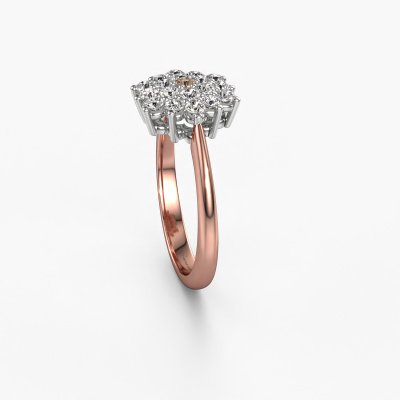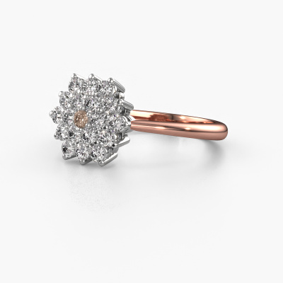 The ring shown above is called the Vickey. We call this type of ring a cluster ring, the centre gemstone is surrounded by smaller sized stones. This 14 Carat rose gold version is set with a 0.03 crt round brown diamond centre stone, embraced by smaller diamonds. The classic rose gold flower engagement ring stands out because of its shape. Together, the smaller and bigger sized brown diamond gemstones form a flower and they appear to collide into one big sparkling gem. This classic engagement ring is also known as the flower ring. Our expert Goldsmiths make sure the smaller diamonds stones are set identically so there is no light interference in the brown diamond but unity instead. With perfect precision and a skilful hand each brown diamond is set in the ring. During manufacturing, it is constantly monitored to make sure light reflects flawlessly. This results in a unique engagement ring, with a radiant brown diamond at its centre. A lovely, meaningful gift to bestow upon the love of your life. Because we design and deliver our own rings, we can offer you a engagement ring at a price you won't find anywhere else. A ring is made to order, which helps prevent excess supplies, so we can make you a great price offer. We understand it feels risky, buying your engagement ring online, but we will gladly assist in the designing process, taking your budget into consideration.Our designers and goldsmiths work together each day, creating new jewels. Perhaps you have found a nice classic engagement ring somewhere, which can be used to customize your unique ring. Please feel free to contact us. We will make you an offer, based on a fair price/ quality ratio, which will amaze you.To make it easier for you, we offer a 30 day return policy. Check our terms and conditions.
