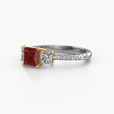 This 14 Carat white gold ring is called Dorla and is set with 5 mm ruby. What is it that makes your relationship unique? What is it about her that makes you want to bend down on one knee? The unique bond between the two of you is emphasized by an equally unique ring. A one of a kind micro pave 3-stone engagement ring made especially for her. That is why this exclusive ring fits her like a glove. Each specific detail of this micro pave white gold ruby set engagement ring is hand-picked, crafted and polished by our expert goldsmith. The result is an exquisite ring, unique and perfectly crafted to perfection. That is what our expert Goldsmiths strive for. This jewel is unique in every way! Simply customize to your liking,After receiving your order, our goldsmiths will passionately start the creative process of making your engagement ring in our own studio. Because we don't have a big stockpile, these costs will not be passed on to you. Our pricing is proof of that! We offer top quality jewels at lowest price, guaranteed.Do you have a specific ring in mind? One you came across somewhere. Please feel free to tell us your wishes and we will turn your design into a unique engagement ring. You can follow the development of your ring design because we use 3D drawings. This gives you a realistic preview of your design. We will gladly send you a non-binding offer, based on a fair price/ quality ratio. It will amaze you.To make it easier for you, we offer a 30 day return policy. Check our terms and conditions.