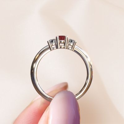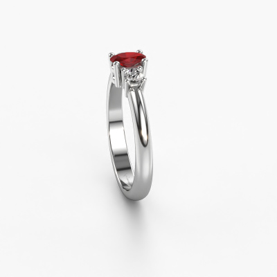 This 14 Carat white gold ring is called Karie and is set with ruby. How would you describe the style of the love of your life? Does she have a unique sense of style? This stunning ajour white gold engagement ring can be custom-made to your own or her liking. Our ruby gemstones have been carefully selected because we believe your traditional engagement ring must be adorned with nothing but the most beautiful gemstone. Don't you agree? This jewel is made just for you by our master goldsmiths in our own studio.After receiving your order, our goldsmiths will passionately start the creative process of making your engagement ring in our own studio. Because we don't have a big stockpile, these costs will not be passed on to you. Our pricing is proof of that! We offer top quality jewels at lowest price, guaranteed.Do you have a specific ring in mind? One you came across somewhere. Please feel free to tell us your wishes and we will turn your design into a unique engagement ring. You can follow the development of your ring design because we use 3D drawings. This gives you a realistic preview of your design. We will gladly send you a non-binding offer, based on a fair price/ quality ratio. It will amaze you.To make it easier for you, we offer a 30 day return policy. Check our terms and conditions.